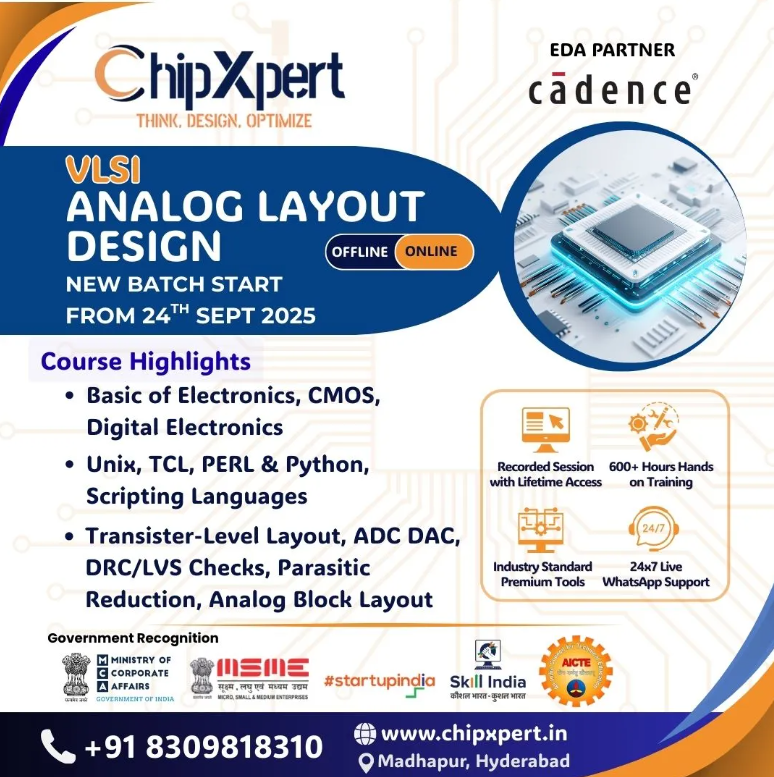 Get hands-on training in Analog Layout Design, one of the most in-demand and niche domains in the VLSI industry. Learn from seasoned professionals and gain real-time project exposure using industry-grade EDA tools.