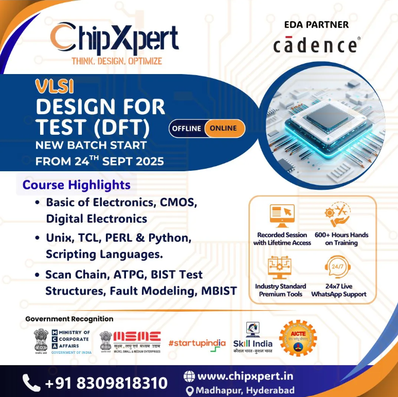 DFT is one of the most critical and high-paying domains in the VLSI backend flow. At ChipXpert, our DFT course is designed to prepare you for real-world test architecture, fault modeling, scan insertion, and ATPG implementation – everything you need to become job-ready!