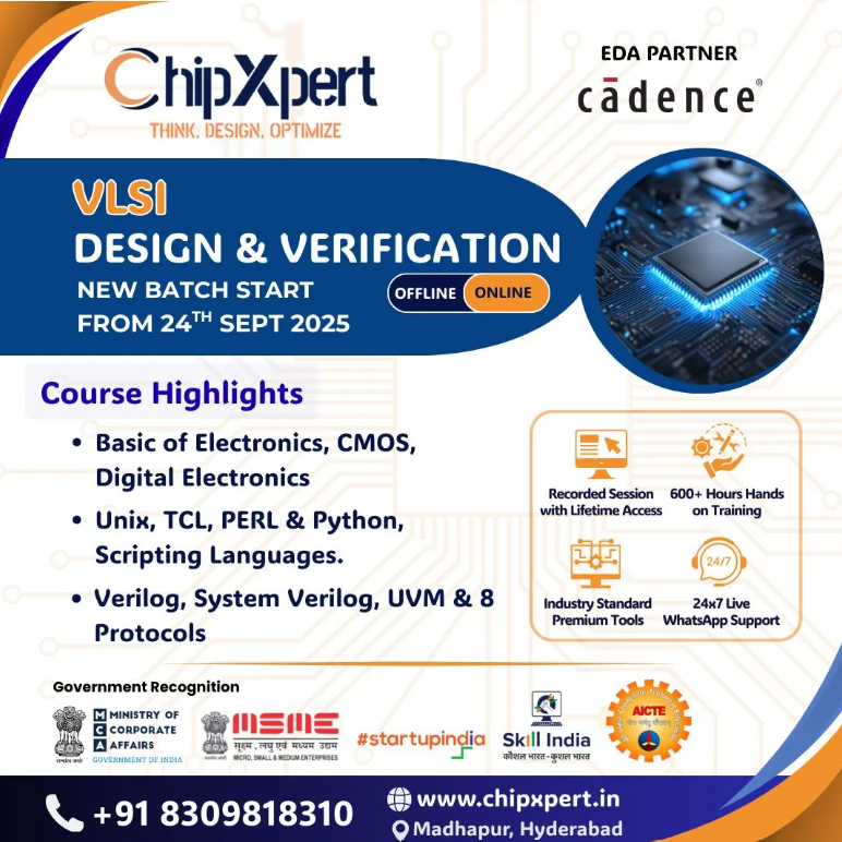 Enroll in ChipXpert’s Design & Verification Training Program and gain industry-ready skills to work on RTL design and functional verification for complex SoCs and IPs.